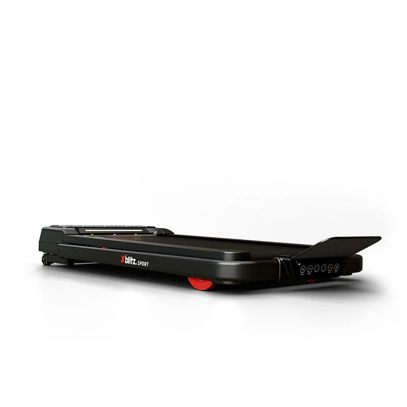 Bieżnia Xblitz X-Runner 2 została zaprojektowana z myślą o niewielkich przestrzeniach. Po zakończonym treningu możesz ją szybko złożyć i schować pod łóżkiem, za szafą lub ustawić w kącie pomieszczenia. Wbudowane kółka transportowe umożliwiają łatwe przesuwanie urządzenia bez wysiłku i bez ryzyka uszkodzenia podłogi.